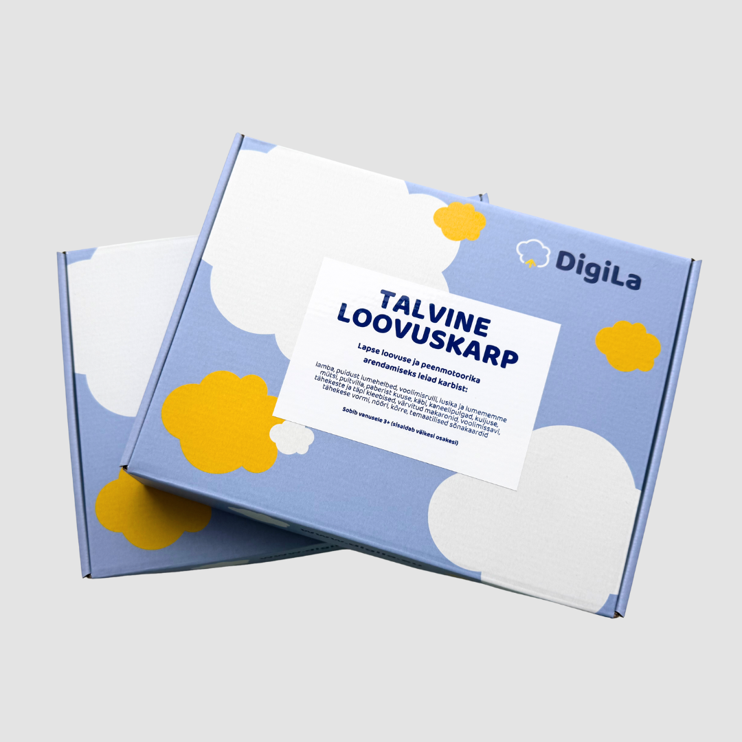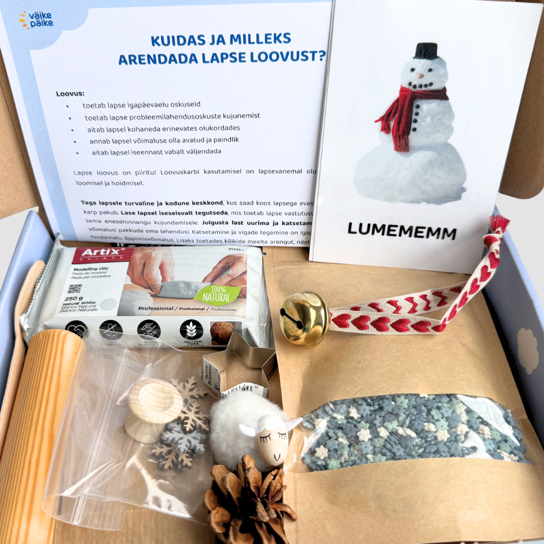 Talvises loovuskarbis on: lammas, puidust lumehelbed, voolimisrull, lusikas ja lumememme müts, puitvill, paberist kuusk, käbi, kaneelipulgad, kuljus, tähekeste ja täpi kleebised, värvitud makaronid, voolimissavi, tähekese vorm, nöör, kõrs, temaatilised sõnakaardid.